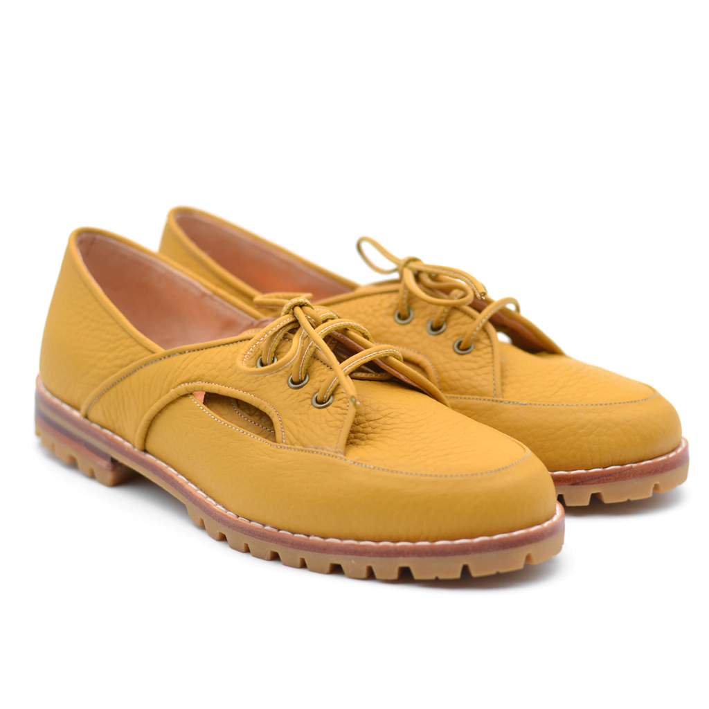 Fabricados en cuero color maíz ... con cordones al tono.