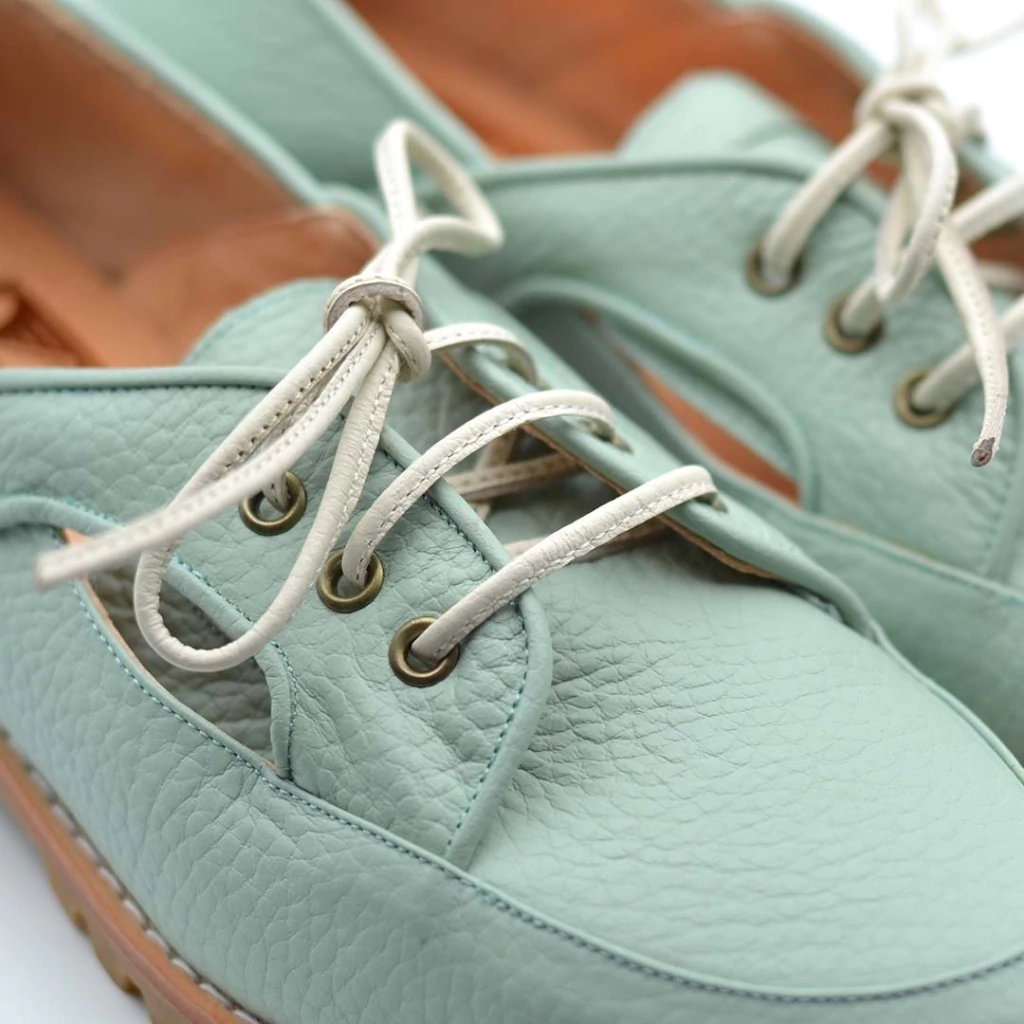 Fabricados en cuero color verde aqua ... más cordones blancos.