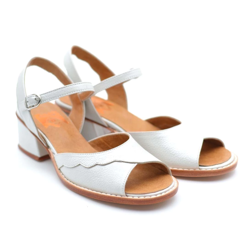 Fabricados en 100% cuero vacuno color blanco perlado.
