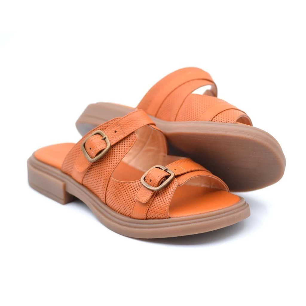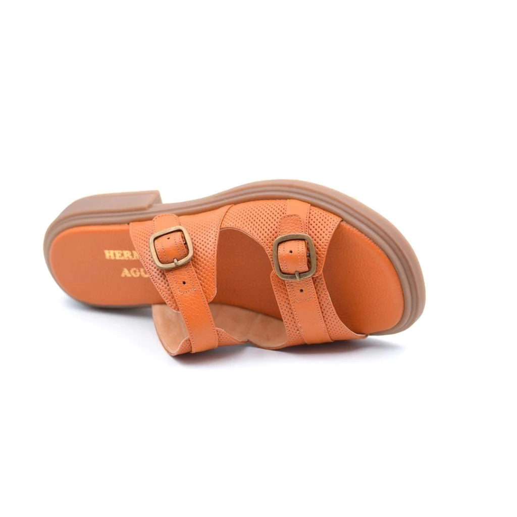 Fabricadas en cuero de color terracota.